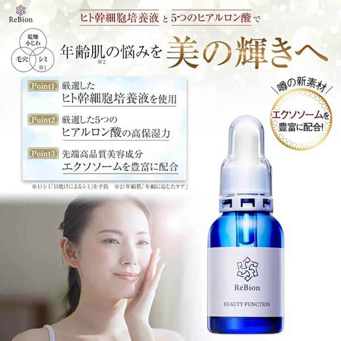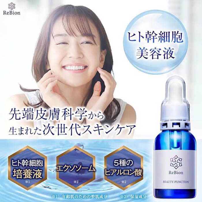【ReBion】 ビューティーファンクションは、厳選したヒト幹細胞培養液と先端美容液成分エクソソームを豊富に配合した「大人の女性のスペシャルケア」が叶う美容液です。