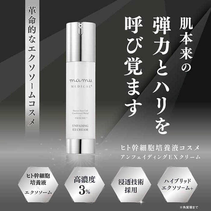 【mamu MEDICAL】アンフェイディングEXクリームは、エクソソームを豊富に含んだ幹細胞培養液原液を贅沢に高配合したスキンケアクリームです。
