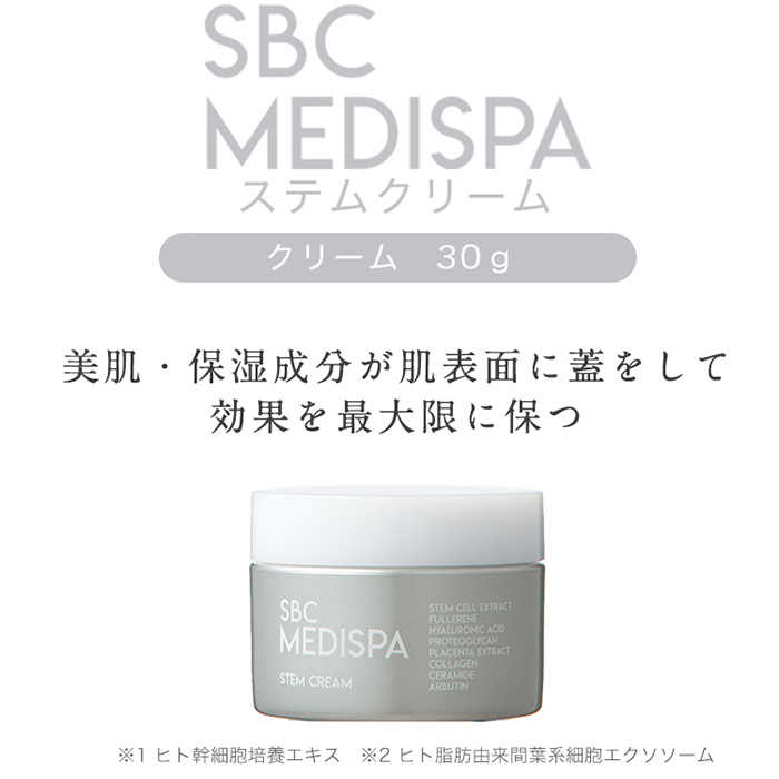 【SBC MEDISPA】 ステムクリームは、ヒト由来幹細胞エキスとエクソソームによるハイブリッドアプローチで肌を最先端の美へ導くクリームです。