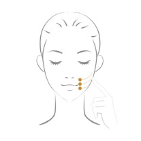 小鼻・口角・中心の3点にクリームを置いて、こめかみまで引き上げるようにやさしく塗りましょう。