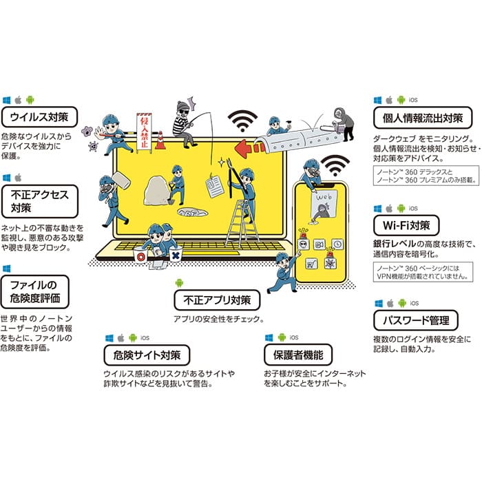 また、フィッシング詐欺や不正アクセスなど、さまざまな種類のサイバー攻撃からあなたを守ります。