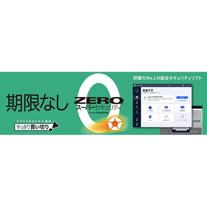ソースネクスト ZERO スーパーセキュリティは1回入れたら、その1台を最後まで守ってくれる買い切り方式のセキュリティソフトです。未知ウイルスに強い先進技術(Advanced Threat Defense)で、あなたのデバイスを守ります。