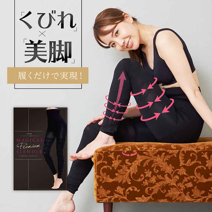 &YELL マジカルプレミアムスレンダーは、腰・太もも〜足首までをぎゅっと引き締めて加圧する多機能型オールインワンレギンスです。