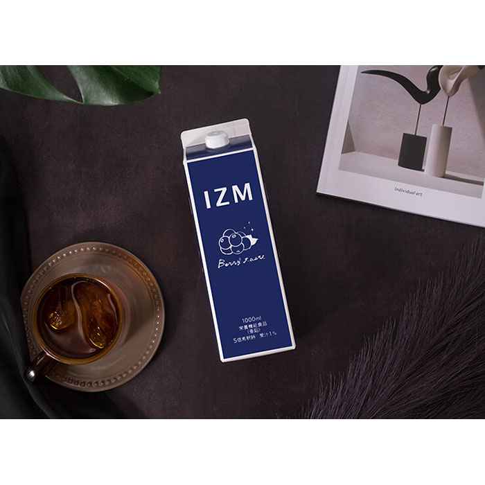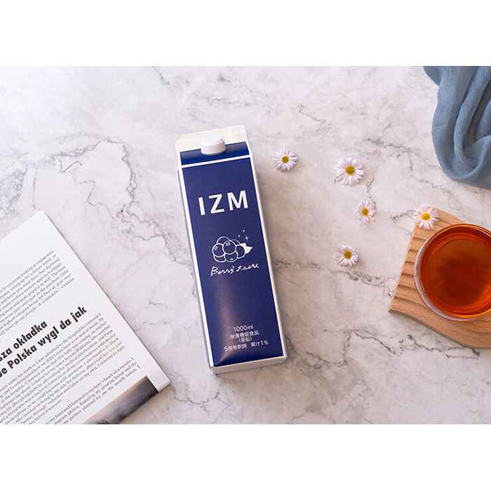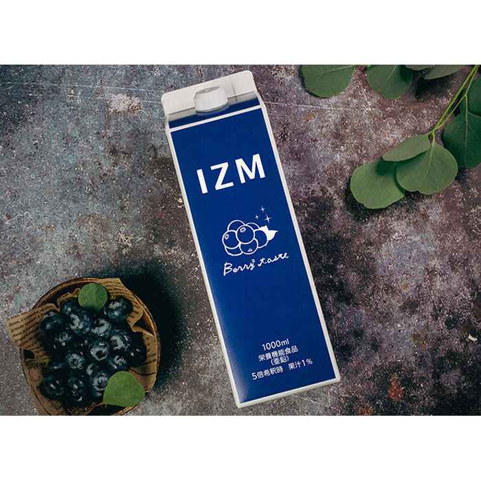「IZM | BERRY BERRY TASTE」は、牛乳パックのような形の、青いシンプルなアルミパッケージが印象的。かわいい見た目でテンションも上がりそうです。