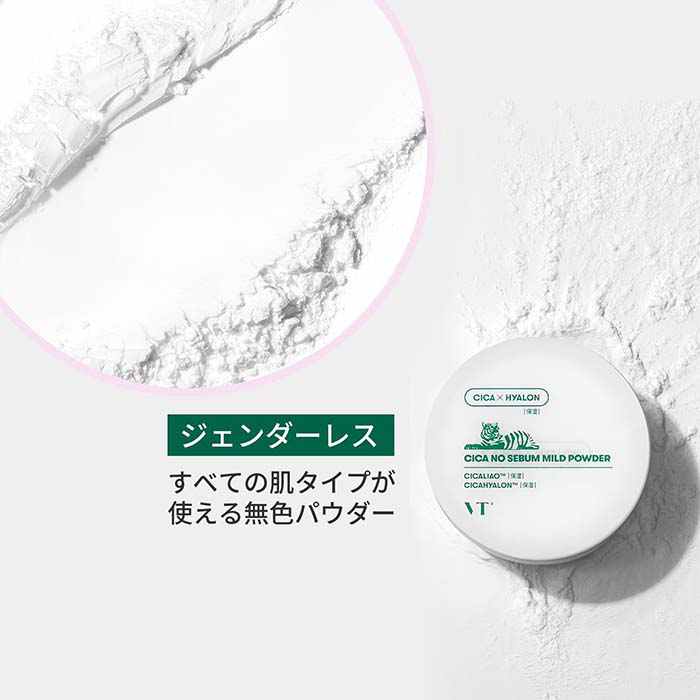 VT CICA ノーセバム マイルドパウダーは、優れた皮脂コントロール効果を持つ人気のフェイスパウダーです。シリカパウダーとシリル化シリカパウダーが配合され、毛穴や肌の凹凸をなめらかにカバーしてくれるのが特長です。