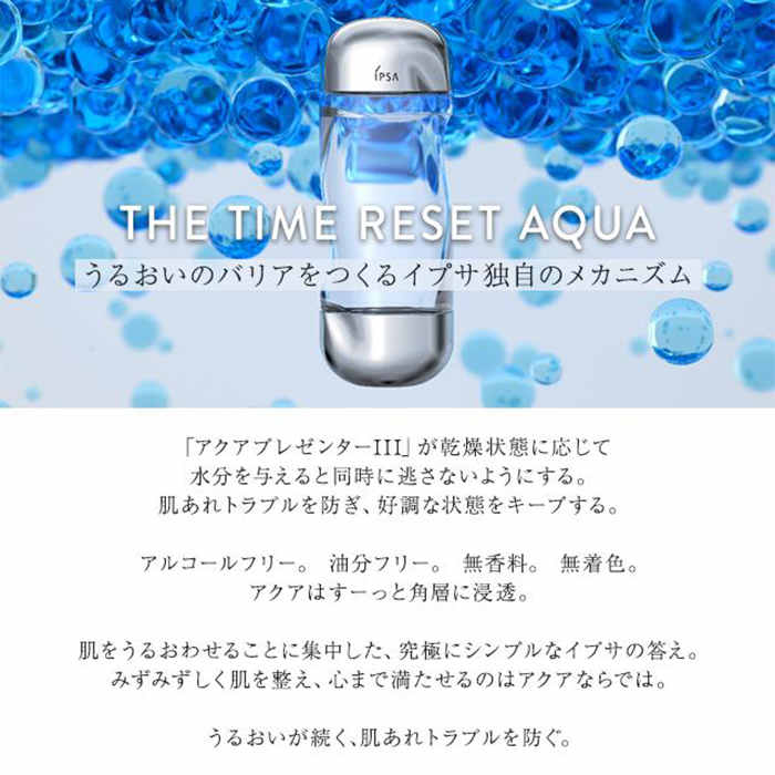【IPSA】 ザ・タイムRアクアは、まるで水をまとったようなみずみずしい感触を持続できる薬用化粧水です。