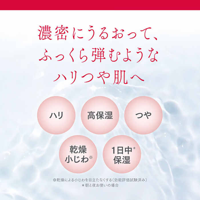 保湿成分「MCアクティベーター」とうるおいの巡りにアプローチする成分「キーポリンブースター」配合で、うるおいを満たしハリのある肌へと導きます。