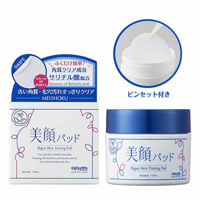桃谷順天館【明色美顔】美顔パッドは、創業130年以上の老舗化粧品メーカーである桃谷順天館から発売されている拭き取りパッドです。長年ニキビ研究をしてきた桃谷順天館のロングセラー商品である「美顔シリーズ」から、新たなコンセプトとして生まれました。洗顔後は拭き取り化粧水がたっぷりと含まれた丸型のパッドで拭き取るだけのため、手軽に角質ケアができるのが魅力です。衛生面にも配慮されていて、パッドと一緒にピンセットも入っています。