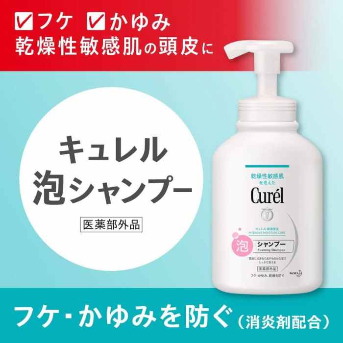 キュレル 泡シャンプーは、赤ちゃんのデリケートな肌にも使える弱酸性シャンプーです。ポンプを押すだけで濃密な泡が出るため、頭皮の皮脂や汚れを素早く洗い上げます。植物由来の有効成分であるグリチルリチン酸ジカリウムが配合されているので、フケやかゆみに悩んでいる人にもおすすめです。健やかな頭皮のために必須の成分「セラミド」を守って洗えるマイルド洗浄処方で頭皮のうるおいをも守りながら洗い上げるため、特に乾燥肌の人に適しています。