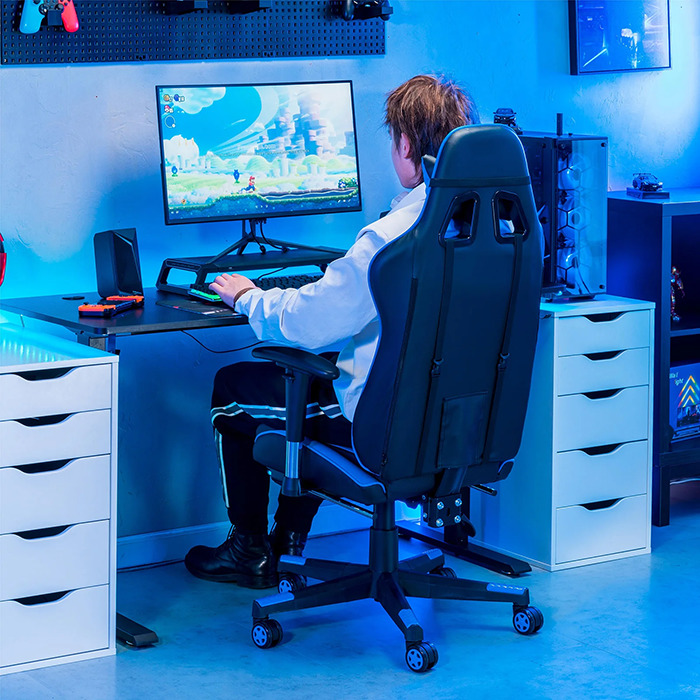 ゲーミングチェアは、長時間のPC作業やゲームプレイを快適にするために設計された椅子です。一般的なオフィスチェアとは異なり、リクライニング機能やアームレストの調整、ランバーサポートなどを搭載し、身体への負担を軽減します。