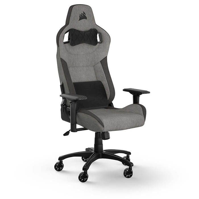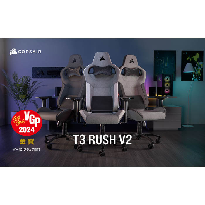 CORSAIRの「T3 RUSH V2」は、通気性に優れたファブリック素材を採用したエルゴノミックデザインのゲーミングチェアです。柔らかな布地は蒸れにくく、長時間の使用でも快適な座り心地を提供します。また、取り外し可能なヘッドレストとランバーサポートクッションが首と腰をサポートし、疲労を軽減します。