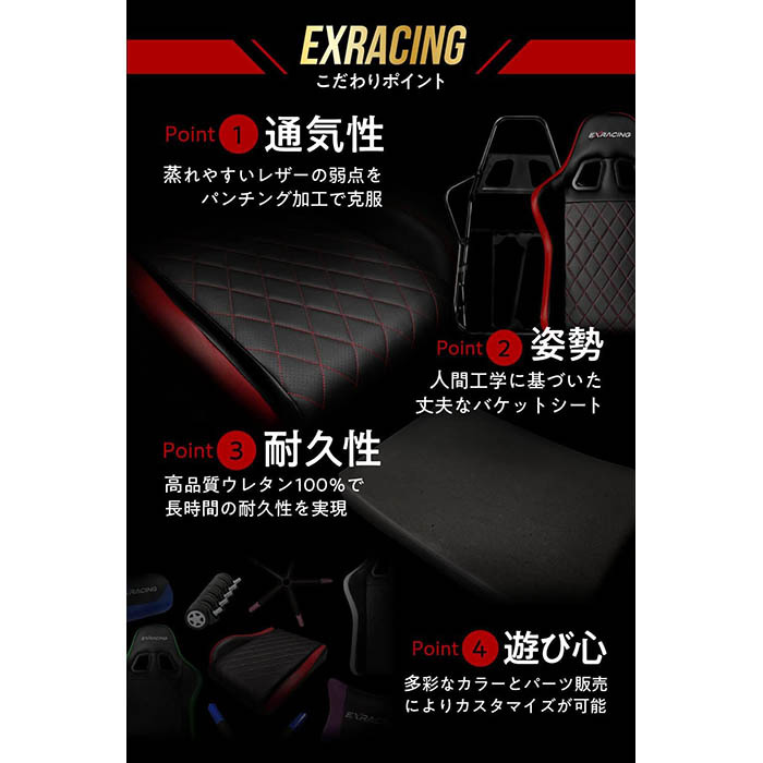 EXRACINGのゲーミングチェア「フットレストモデル EX-002」は、快適性と機能性を兼ね備えた製品です。高品質なPUレザーを使用しており、柔らかな手触りと耐久性を実現しています。