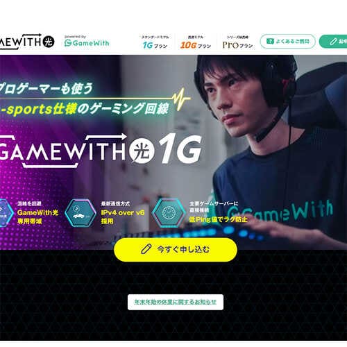 プロゲーマーや本格的にゲームを楽しみたい人には、ゲームに特化した光回線や専用プランを選ぶのがおすすめです。例えば、eスポーツやオンラインゲーム向けに設計された高速光回線サービス「GameWith光」や最大10Gbpsの高速通信に対応したゲーミング特化型の光回線サービス「hi-hoひかり with games」がおすすめ。
