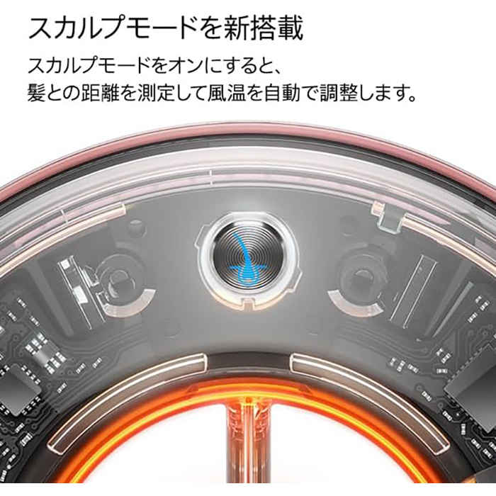 髪や頭皮の温度が高くなりすぎると、気づかないうちにダメージが蓄積してしまいます。温度を適温に保つことで、ダメージを最小限に抑えることのできる機能です。