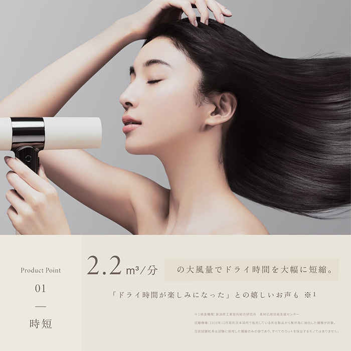コンパクトな外観にもかかわらず、大風量な点が最大の特徴。乾燥時間を従来商品の30%短くし、長いヘアドライ時間を快適な時間へと改善してくれます。