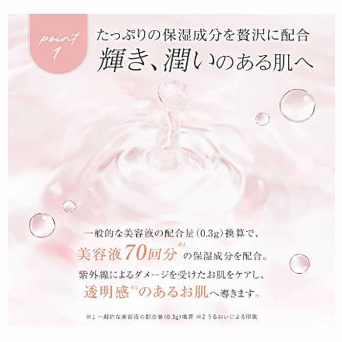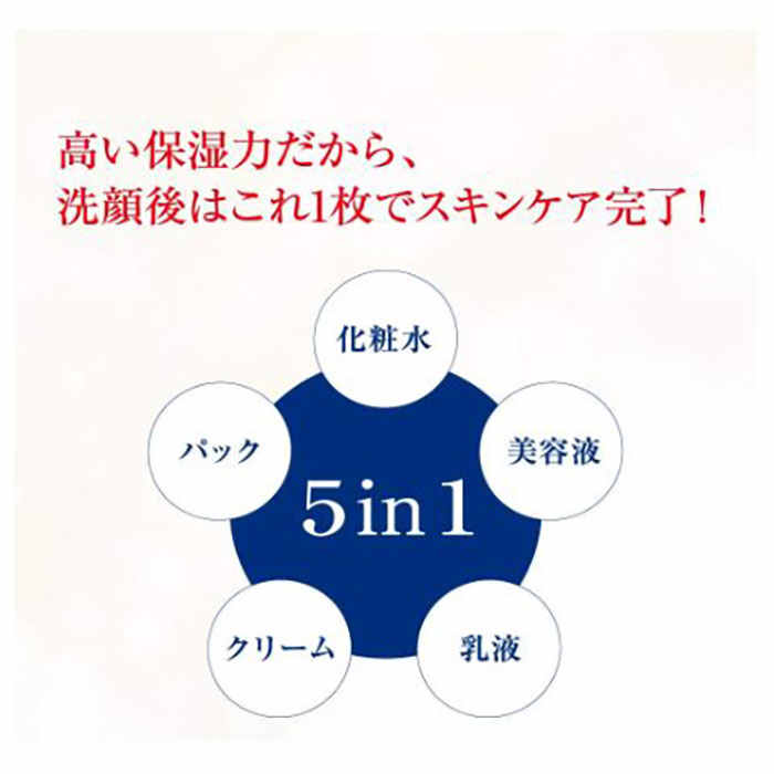 なめらかでコクのあるジェル乳液が肌にたっぷりのうるおいを与えます。1枚で化粧水・美容液・乳液・クリーム・パックの5役をこなし、保湿力が高い分、洗顔後はこれ1枚でスキンケアが完了します。