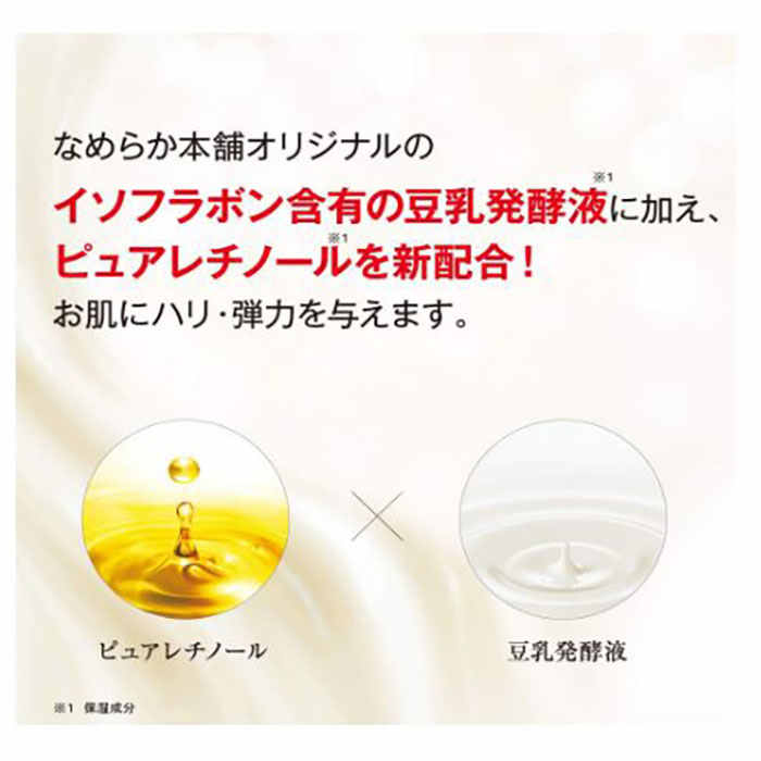 水、グリセリン、BG、スクワラン、マルチトール、レチノール、パルミチン酸レチノール、豆乳発酵液、ダイズイソフラボン、ダイズ種子エキス、ダイズタンパク、セラミドNG、クロスポリマー、DPG、EDTA-2Na、PEG-60水添ヒマシ油、PPG-4セテス-20、イソステアリン酸ポリグリセリル-10、エタノール、キサンタンガム、シア脂、ジグリセリン、シクロデキストリン、ジメチコン、トコフェロール、ポリソルベート20、ポリソルベート80、レシチン、水酸化K、水添レシチン、メチルパラベン