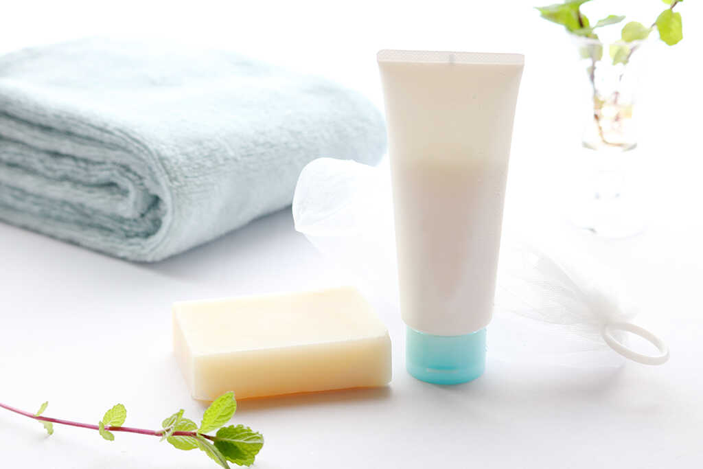 洗顔料をしっかりと泡立てることで、泡の表面積が増えるとともに汚れとの接触面積が増えるため、少ない洗顔料で効率的に汚れを落とすこともできます。また、泡がクッションとなって手と肌の摩擦刺激を少なくすることができます。泡立てが苦手な人は、泡立てネットや泡タイプの洗顔料を使うのもおすすめです。