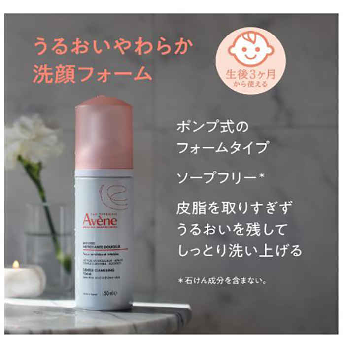 また、「アベンヌ温泉水」の配合により、敏感な肌を整えながら、しっとりと洗い上げることができるため、サッと泡を洗い流せ、ぬめり感が残らないやわらかい肌へと仕上げられます。石鹸成分を含まない植物由来の洗浄成分を使っているのも、この商品の大きな特徴です。皮脂を取りすぎることがないので、うるおいも残ります。