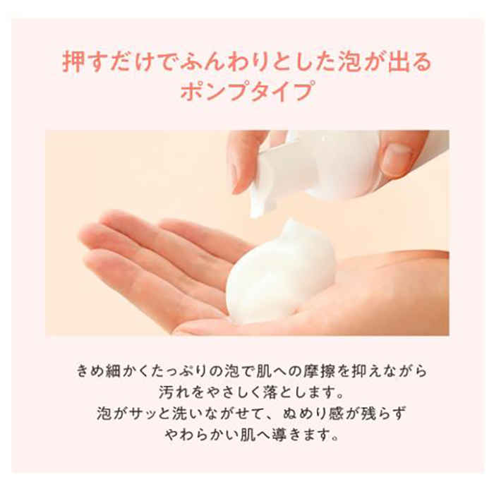 泡立て不要のポンプ式のため、簡単にふわもこ泡が完成します。泡立てが苦手な人、 ゆっくり泡立てる時間がない人でも簡単にきめ細かい泡が作れるので、とても便利です。有効成分の「グリチルリチン酸ジカリウム」も配合されているので、肌荒れ防止も期待できます。