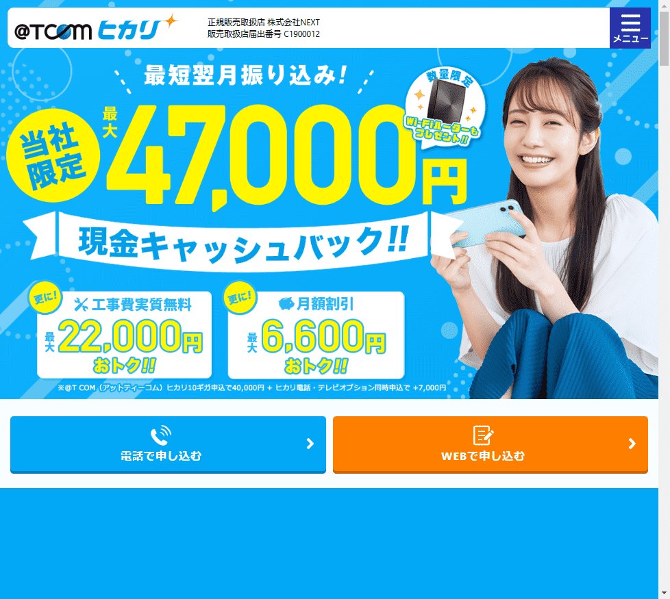 お得なキャンペーンを適用させてauひかりに申し込みたい人は、 公式サイトで開催していないキャンペーンを取り扱っていることがあります。