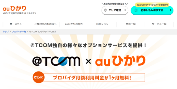 @TCOM(アットティーコム)は、TOKAIコミュニケーションズが提供するプロバイダです。@TCOMでは、電力使用状況を可視化できる「エネレポ」や、スケジュール管理や家計簿まで使える「My@TCOM」など、ユニークなオプションを選べます。