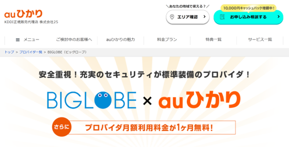 BIGLOBE(ビッグローブ)は、長年にわたり信頼性の高いインターネット接続サービスを提供しているプロバイダです。