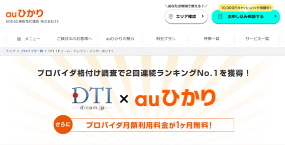 | DTI | ・開通月無料 ・安心ネットフィルター……初月無料 ・DTI Club Off(優待サービス) |