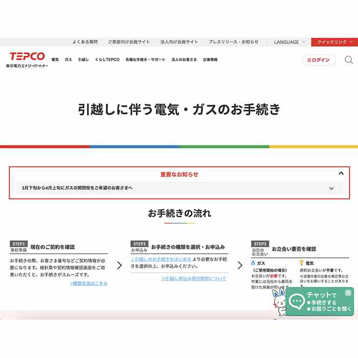 会員専用のオンラインサービス「くらしTEPCO web」を通じて、電気やガスの使用量の確認、料金の支払い、契約内容の変更などがオンラインで簡単に行えます。これにより、引っ越し後の手続きや日常の管理がより便利になります。