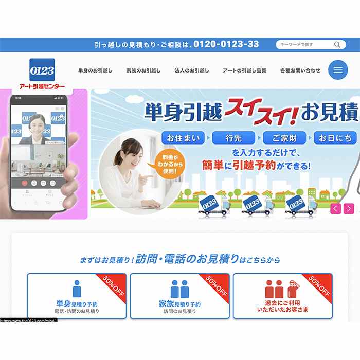 アップル引越センターは、創業18年で42万件を超える実績を持つ全国展開の引っ越しサービスです。 年間15,000件以上の紹介・再利用があり、その信頼性と高品質なサービスが評価されています。 同社は、電話や訪問なしで24時間365日、インターネット上で見積もりや予約が完了する「ラクニコス」というシステムを導入しており、忙しい人でも手軽に利用できます。
