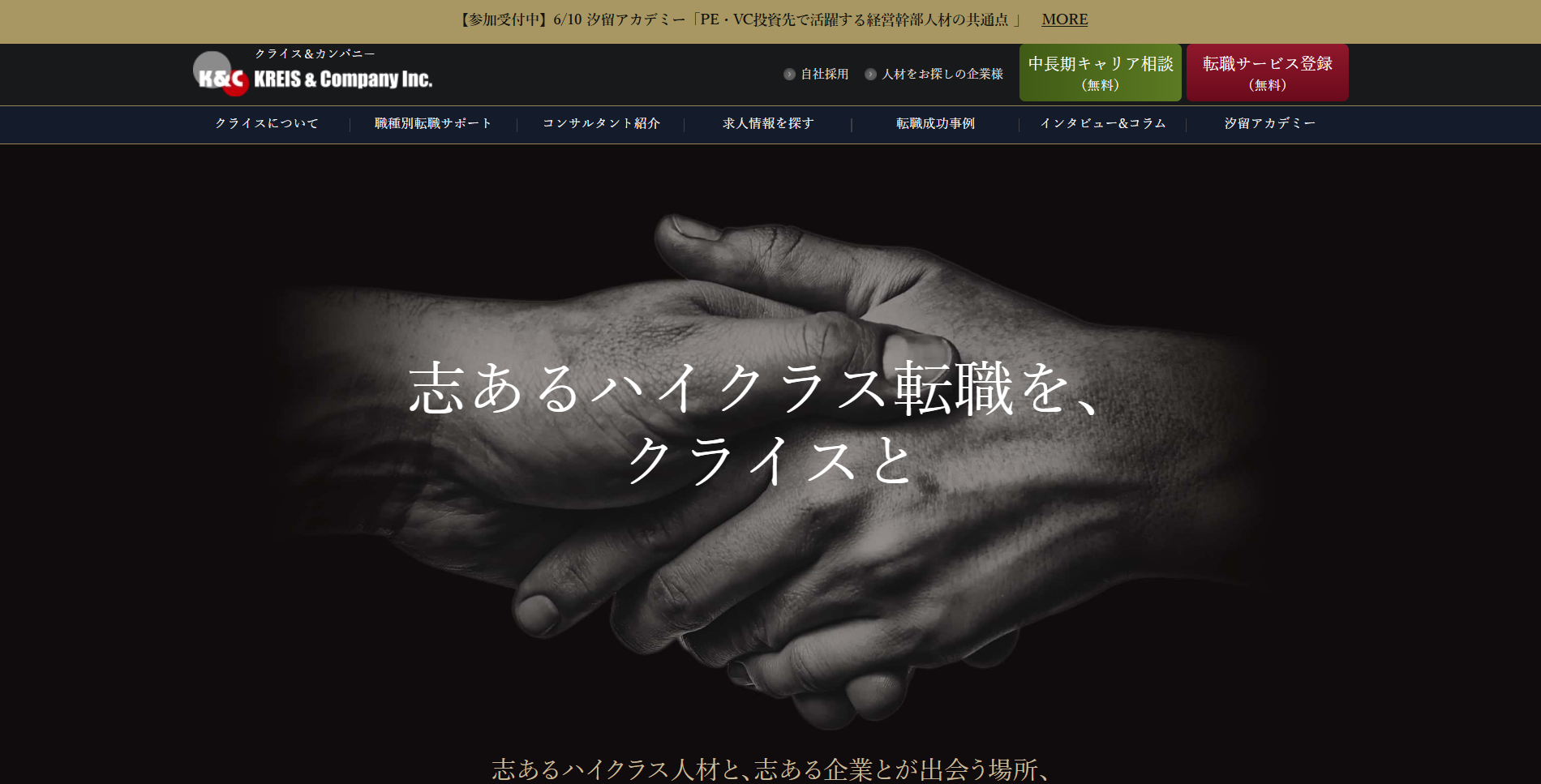 クライス&カンパニーは、志あるハイクラス人材と企業をつなぐ専門エージェントです。経営層やエグゼクティブ向けの求人を中心に、広範なネットワークと豊富な非公開求人を通じて転職を支援しています。