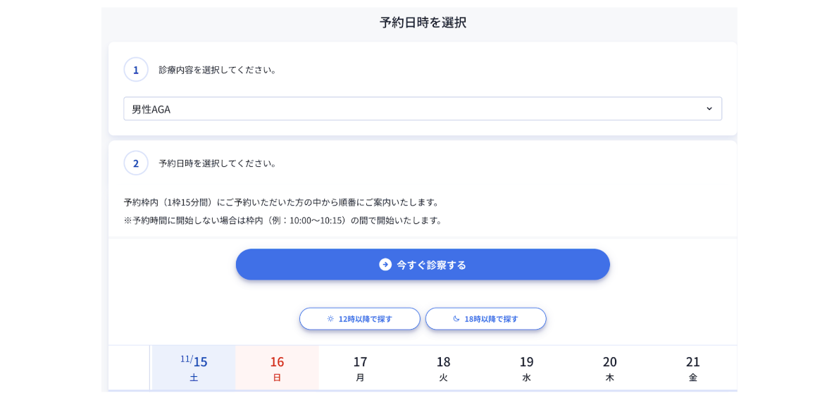 ステップ①公式ページから診療日時を選択