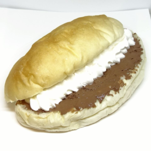 なめらかなホイップクリームと濃厚なチョコクリームをたっぷりサンドした一品で、子どもから大人まで幅広い世代に親しまれているコッペパンです。