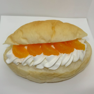 爽やかなみかんと、たっぷりのホイップクリームをふわふわのコッペパンで包んだ一品です。スイーツ感覚で楽しめるおすすめメニューです。