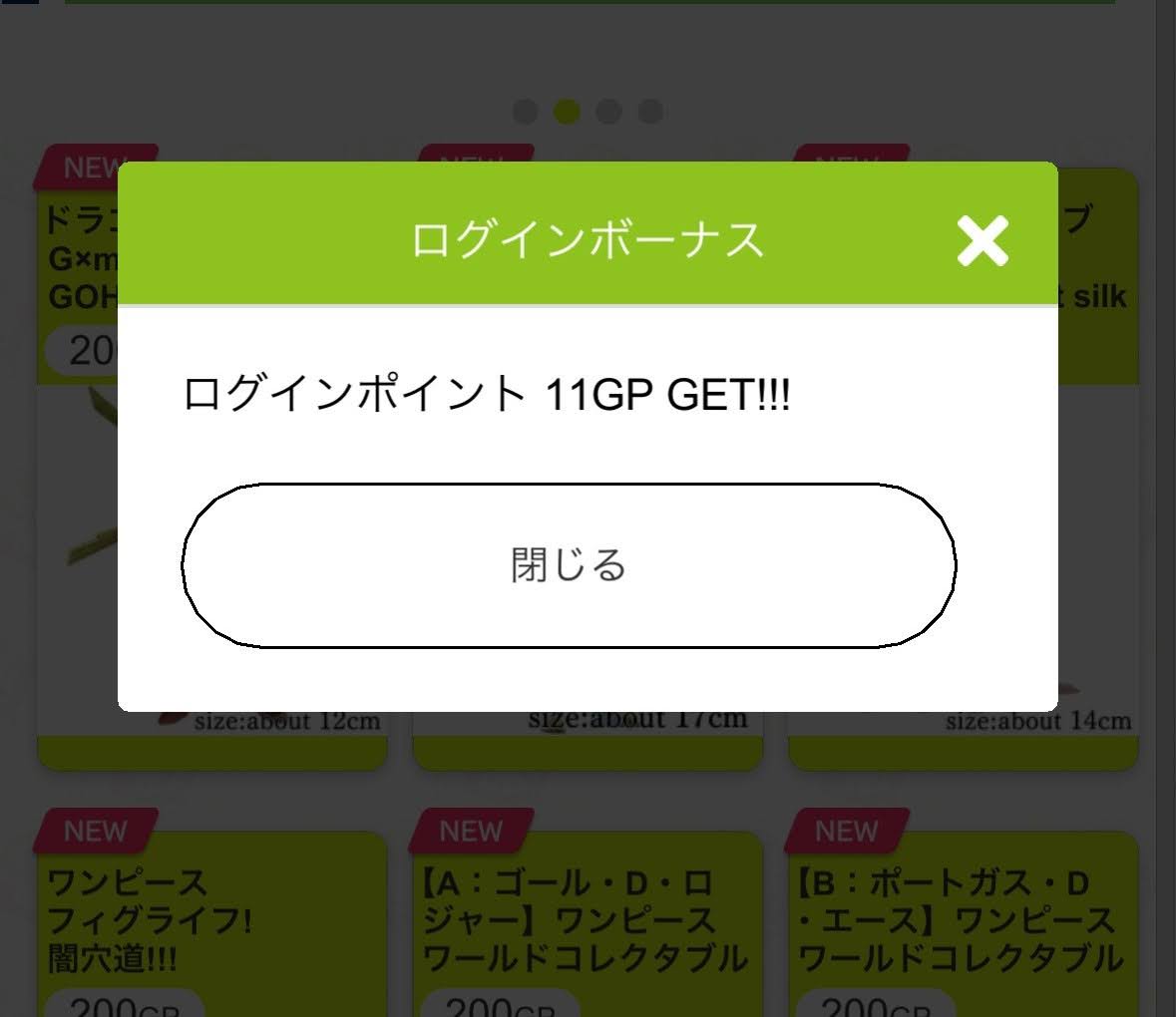 ログインボーナスは、1日1回、ログインした際に付与されるポイントのことです。月初イベントの開催中は、通常よりも多めにログインボーナスをもらえます。