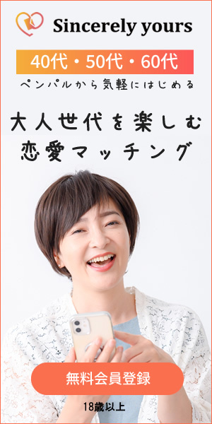 アプリの世界では、コスパ・タイパが重視されがちで、メッセージ交換に時間をかけるのを嫌がられることも珍しくありません。「メッセージが続かない」理由もこうしたところにあります。40代・50代・60代のミドルシニアだからこそ、大人の余裕をもって時間をかけて相手を見極めたいものです。
