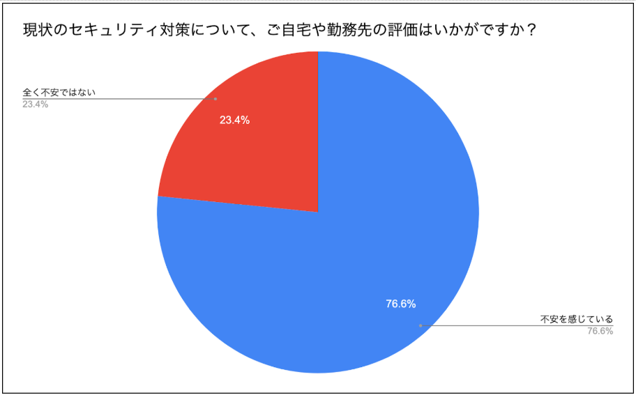 現状のセキュリティ対策について、全体の約80%が「不安を感じている」と回答しました。